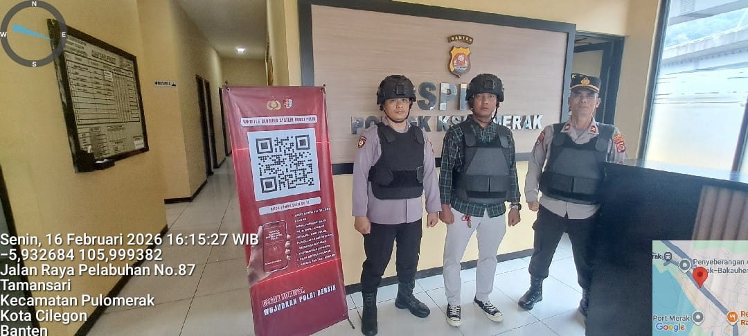 Cilegon - Personel piket jaga Polsek Kskp Merak Polres Cilgon Polda Banten melaksanakan siaga 1 Polsek pelaksanaan Sispam Mako oleh piket siaga dipimpin oleh Kspk Polsek Kskpy Merak Polres Cilegon Polda Banten, Senin (16/02/2026).Kapolres Cilegon Polda Banten AKBP Martua Raja Taripar Laut Silitonga diwakili Kapolsek Kskp Polres Cilegon Polda Banten...