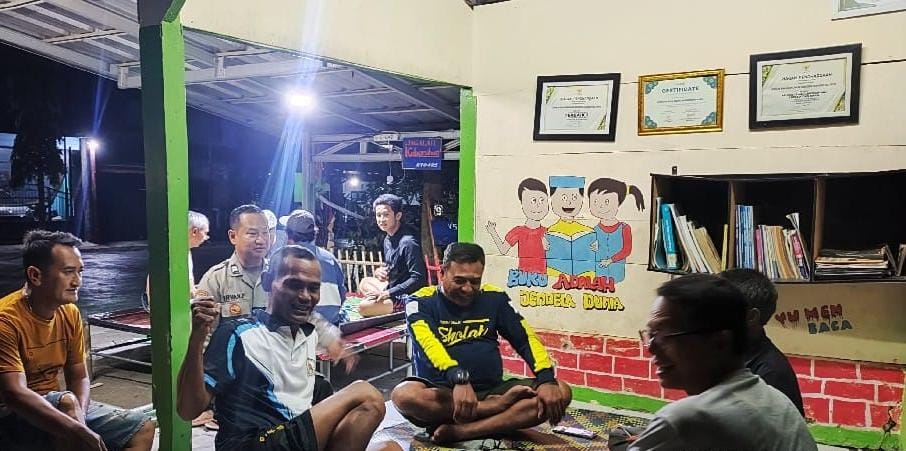 Personel Bhabinkamtibmas Polsek Anyar Polres Cilegon Polda Banten Aiptu Irvan melaksanakan sambang Ronda Siskamling Dalam rangka menjaga Harkamtibmas dan Sebagai bentuk mendukung Program Quick Wins Presisi Polri, Kamis (02/10).