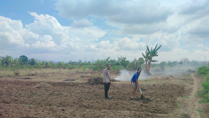 Bripka Leo Bhabinkamtibmas Polsek Bojonegara Mengecek Lahan Siap Tanam Jagung Dukung Ketahanan Pangan Di Desa Binaannya