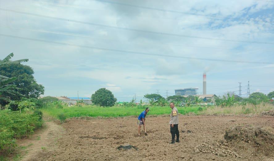 Bripka Leo Bhabinkamtibmas Polsek Bojonegara Monitoring Lahan Jagung Akan Tanam Ketahanan Pangan di Desa Bojonegara