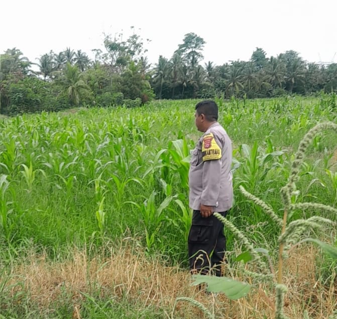 -POLRES CILEGON- Polda Banten. Personil Bhabinkamtibmas Aiptu Wawan setiabudi bersama bersama warga binaanya Melaksanakan Cek ke LahanJagung Dalam Rangka Mendukung Program Ketahanan Pangan Pemerintah dengan Cek Tanaman jagung di Link Tegalbunder Kelurahan Tegalbunder Kecamatan Purwakarta Kota Cilegon.Sabtu.(04-10-2025)