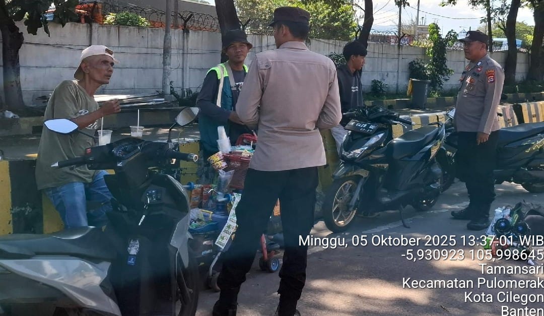 Cilegon - Personel Polsek Kskp Merak Polres Cilegon Polda Banten melaksanakan sambang dan patroli kawasan pelabuhan merak dalam rangka menjaga Harkamtibmas di Kawasan Pelabuhan Merak, Minggu (05/10/2025).