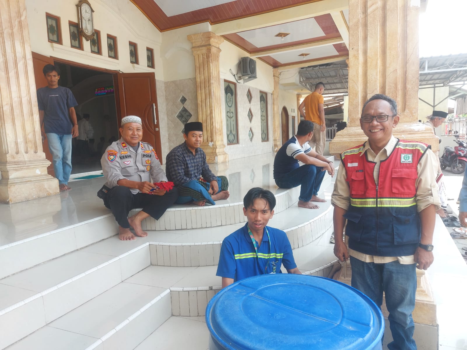 Jumling Bersama Jamaah Masjid Al Husna , Bripka Susilo bersama Bripka Zenal Polsek Bojonegara Jalin Kedekatan dengan Warga dan Sosialisasi Call Center 110