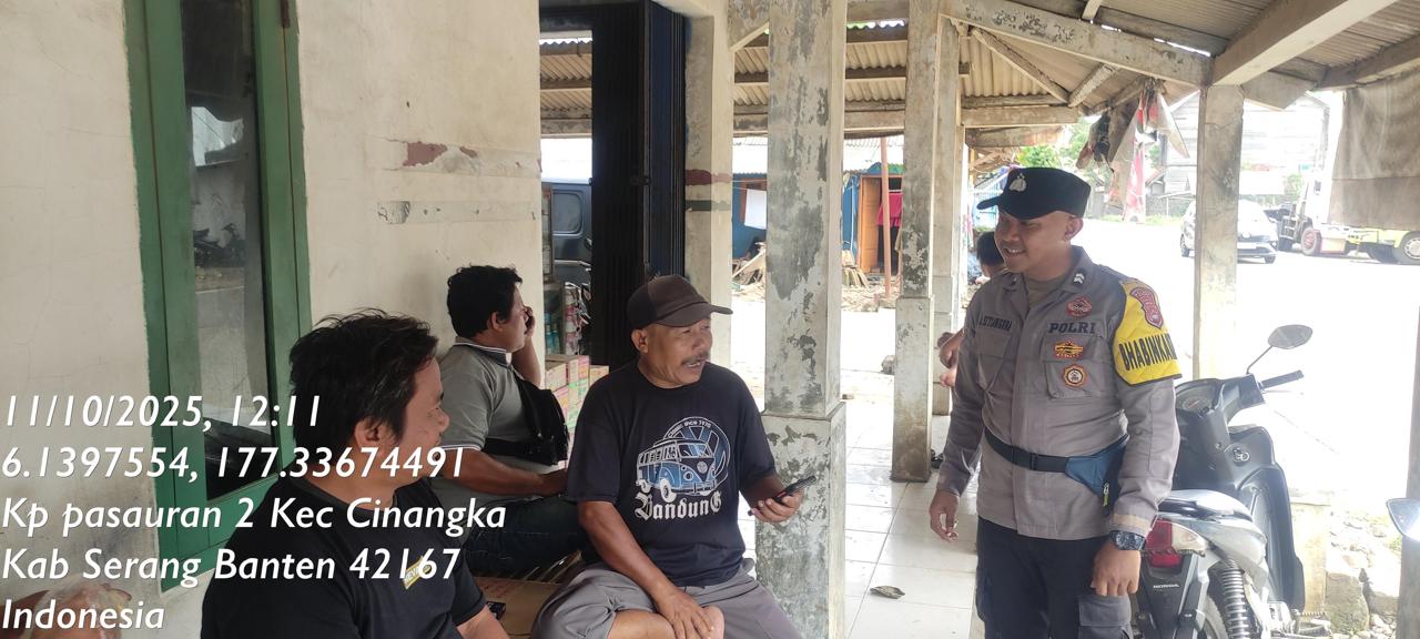 *Polres Cilegon* - Guna Menekan Gangguan Kamtibmas (GKTM) ,Bhabinkamtibmas Polsek Cinangka Polres Cilegon Polda Banten melakukan kegiatan Sambang di daerah hukum Polsek Cinangka, Sabtu (11/10/2025).