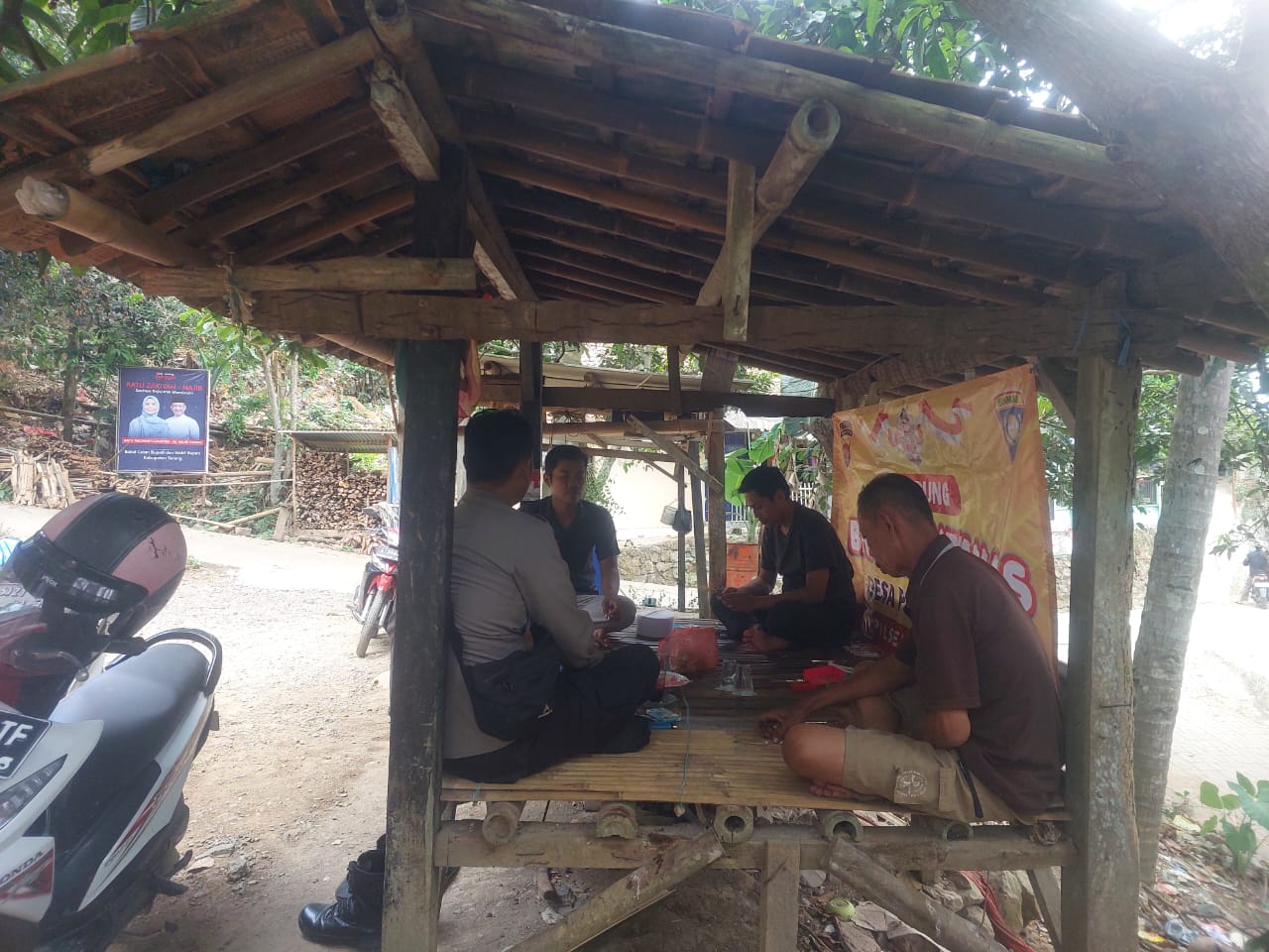 Cilegon ~ Bhabinkamtibmas Polsek Bojonegara Polres Cilegon Polda Banten Sambang dan silaturahmi dengan masyarakat merupakan salah satu tugas seorang bhabinkamtibmas untuk mengetahui situasi Kamtibmas Desa binaan dalam menjalin silaturahmi dengan Warga Desa. Pangerangan di Warung Bhabinkamtibmas, Selasa (14/10/2025).
