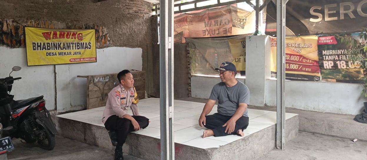 Cilegon ~ Bhabinkamtibmas Polsek Bojonegara Polres Cilegon Polda Banten Sambang dan silaturahmi dengan masyarakat merupakan salah satu tugas seorang bhabinkamtibmas untuk mengetahui situasi Kamtibmas Desa binaan dalam menjalin silaturahmi dengan Warga Desa. Wanakarta di Warung Bhabinkamtibmas, Rabu (15/10/2025).