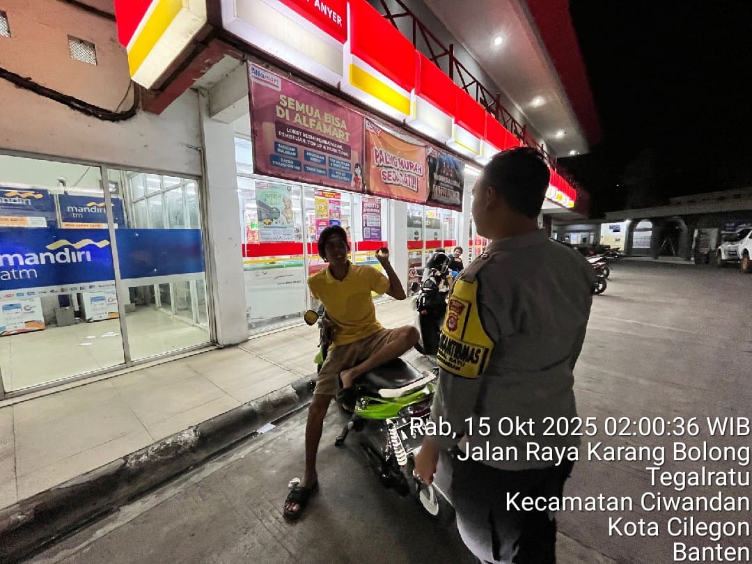 Cilegon - Personil Polsek Ciwandan Polres Cilegon Polda Banten melaksanakan patroli malam untuk mengantisipasi potensi kejahatan, khususnya pembobolan minimarket, di daerah hukum Polsek Ciwandan. Kegiatan ini bertujuan untuk meningkatkan keamanan dan memberikan rasa aman kepada masyarakat, Rabu (15/10/2025).