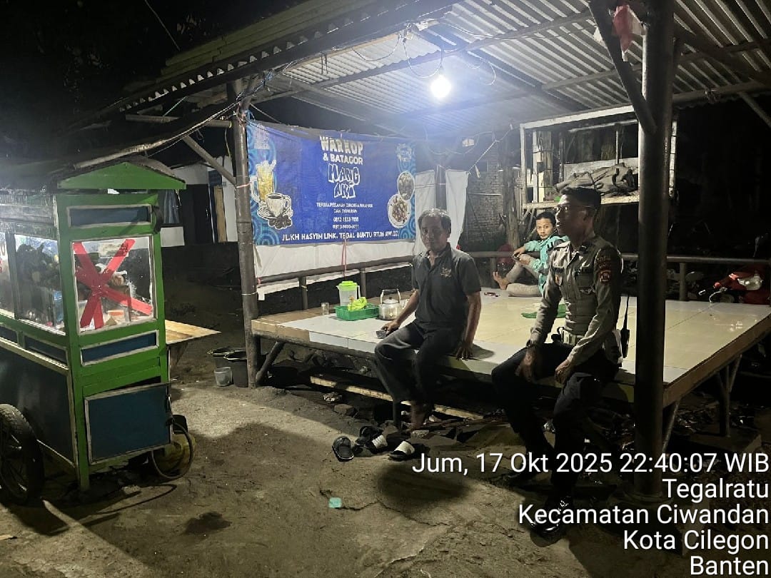 Cilegon - Guna Mencegah Terjadinya Tindak Kejahatan dan Menggiatkan Patroli Pos Ronda Siskamling di Pemukiman warga masyarakat,Personil Polsek Ciwandan Polres Cilegon Polda Banten Mengajak dan memantau pelaksanaan ronda siskamling di lingkungan daerah hukum Polsek Ciwandan, Sabtu (18/10/2025).