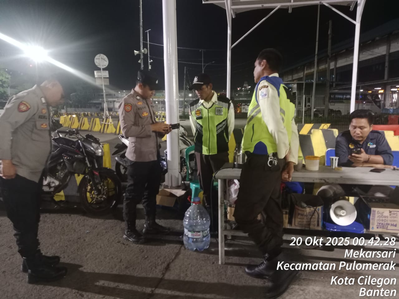 Cilegon - Personil Polsek Kskp Merak Polres Cilegon melaksanakan patroli di kawasan pelabuhan merak memberikan rasa aman dan damai, Senin (20/10/2025)