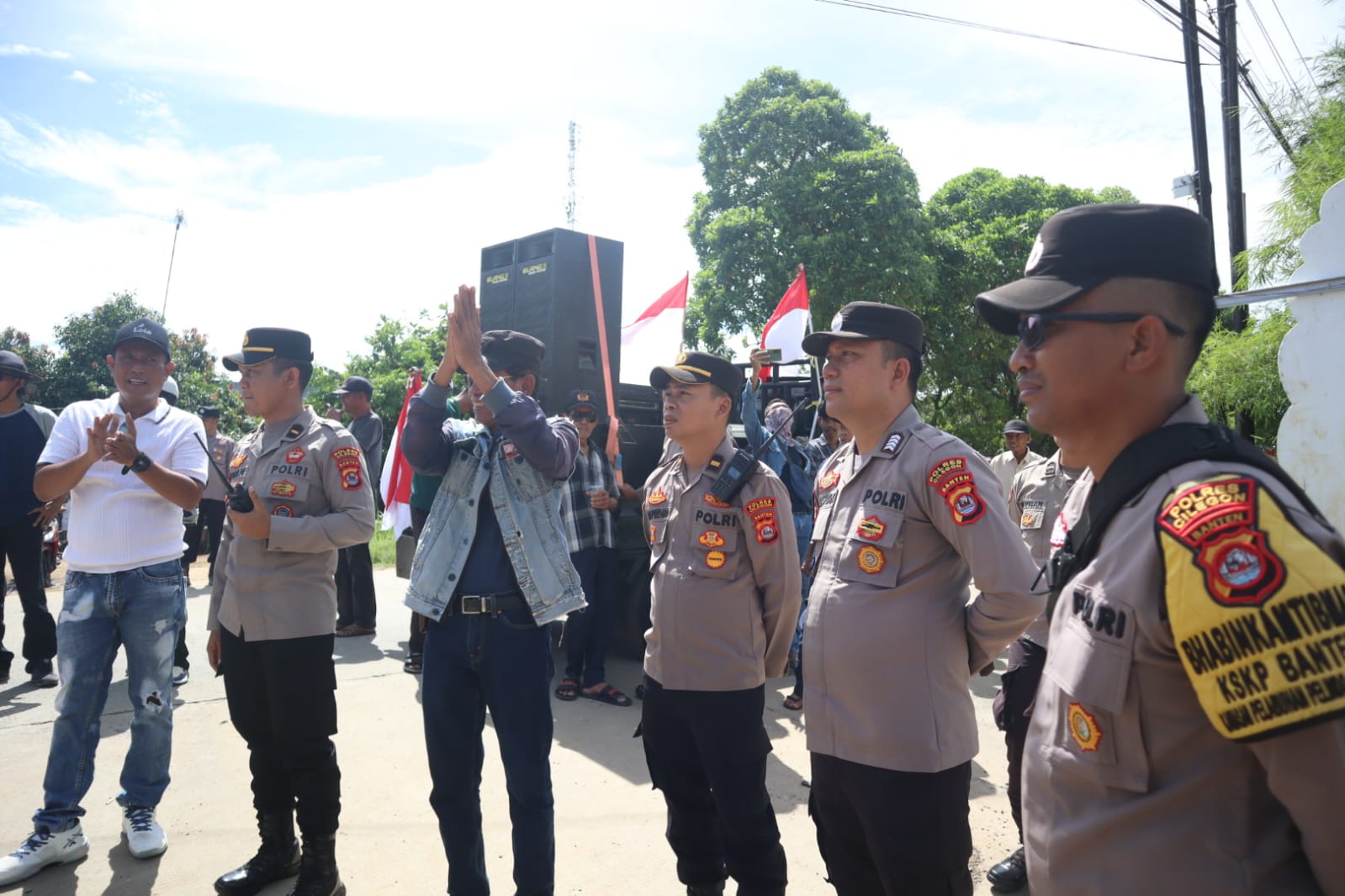 Cilegon – Polres Cilegon Polda Banten melaksanakan pengamanan aksi unjuk rasa yang digelar oleh warga Kelurahan Kebonsari Kecamatan Citangkil terhadap PT Krakatau Tirta Industri (KTI), Aksi berlangsung di akses masuk proyek PT KTI dengan diikuti sekitar 70 peserta dari lima lingkungan, yakni Krenceng, Baru, Cimerak, Delingseng, dan Tegaltong. Kamis (23/10/2025).
