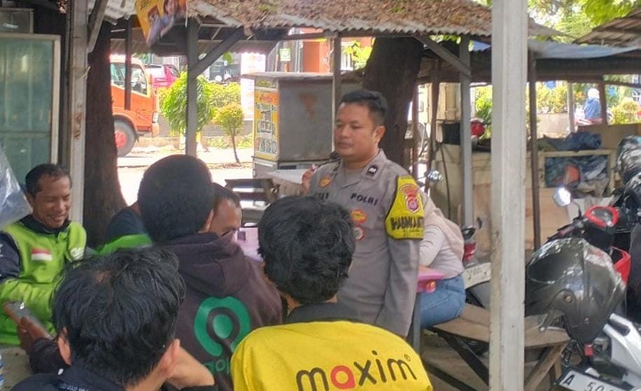 Bhabinkamtibmas polsek cibeber sosialisasikan 110 kepada para ojol