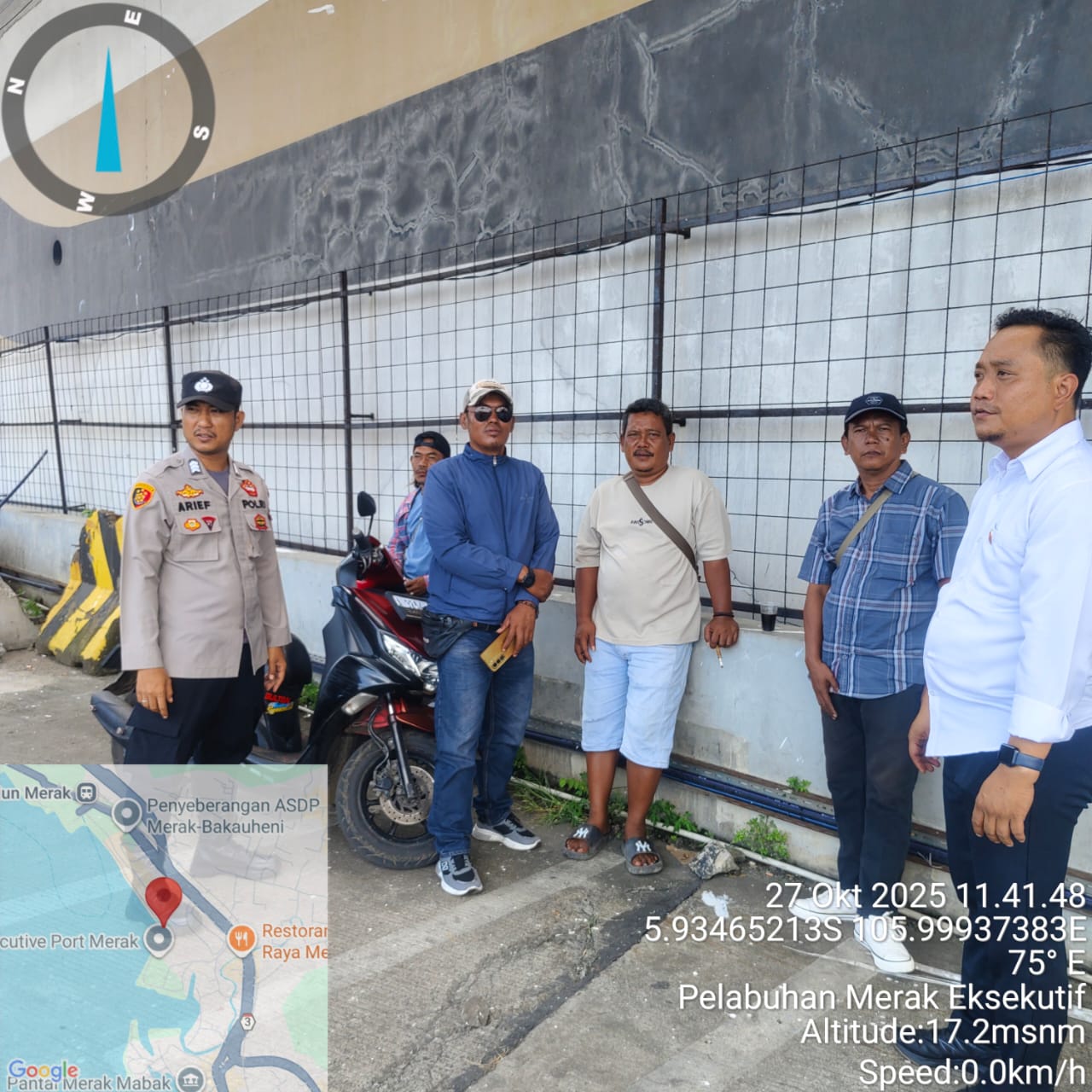 Cilegon - Personel Polsek Kskp Merak Polres Cilegon Polda Banten melaksanakan sambang dan patroli kawasan pelabuhan merak dalam rangka menjaga Harkamtibmas di Kawasan Pelabuhan Merak, Senin (27/10/2025).