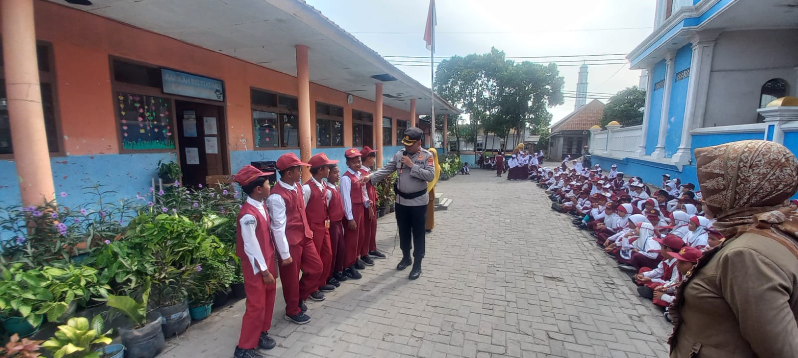 Cilegon – Kapolsek Ciwandan Polres Cilegon Polda Banten KOMPOL Andi Suherman Bersama Bhabinkamtibmas Kelurahan Tegalratu Polsek Ciwandan Polres Cilegon Polda Banten BRIGADIR Dede Abu Menyambangi Sekolah SDN Tegal Kidongdong,Guna Menyampaikan Pesan-pesan Kamtibmas Dan Memberikan Imbauan, Senin (27/10/2025).