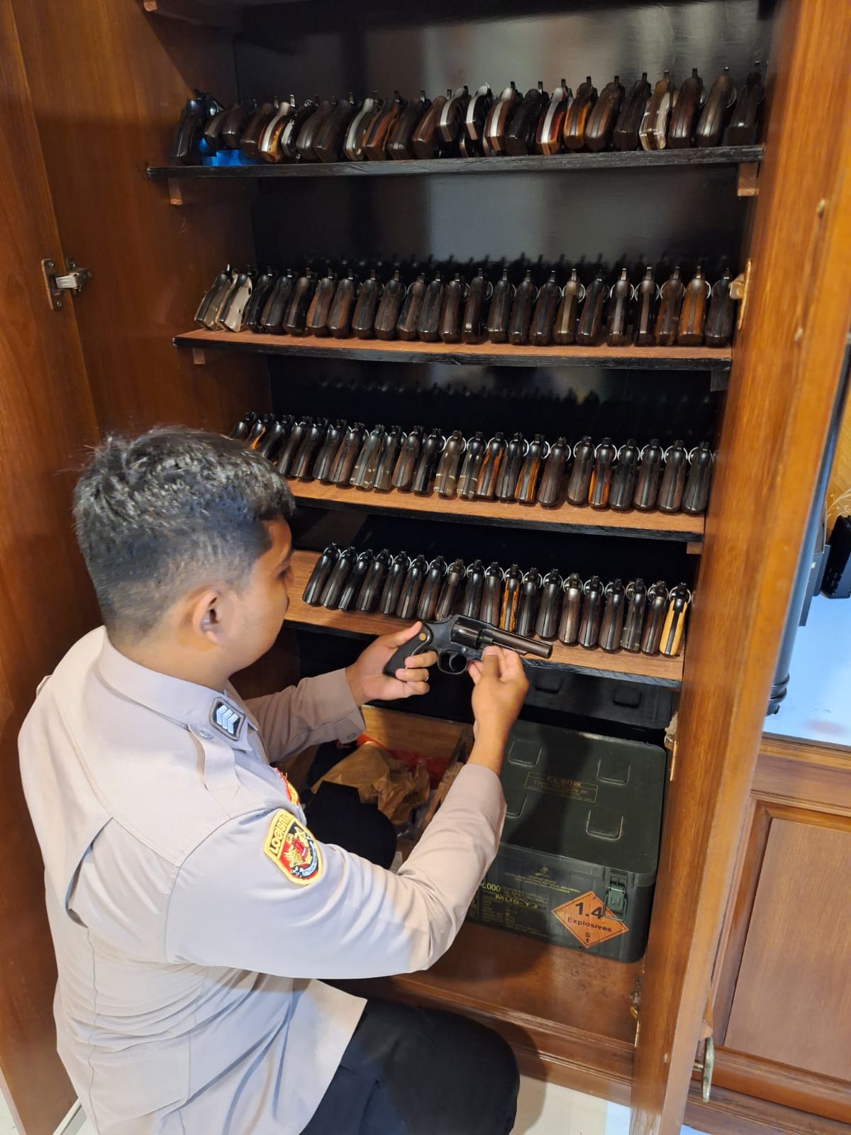 STAFF LOGISTIK PENGECEKAN SENJATA API DI GUDANG