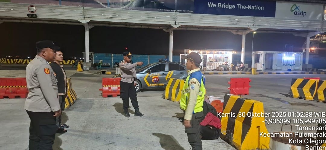 Cilegon - Personil Polsek Kskp Merak Polres Cilegon melaksanakan patroli di kawasan pelabuhan merak memberikan rasa aman dan damai, Kamis (30/10/2025)