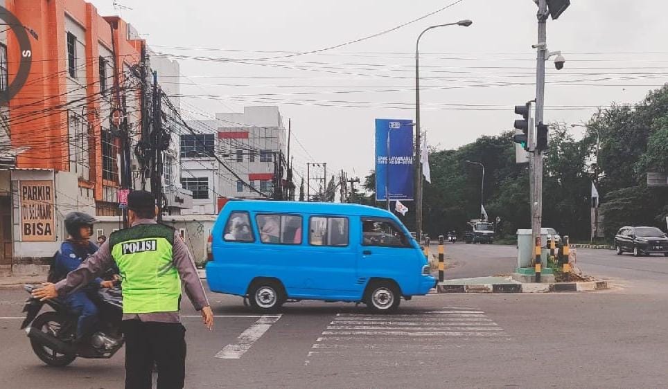 Cilegon - Pelayanan Kepada Warga Masyarakat dan Guna menciptakan situasi lalu lintas yang aman, tertib dan lancar, Personel Polsek Cibeber Polres Cilegon Polda Banten secara rutin melaksanakan pengaturan lalu lintas di sekitar Traffic Light PCI kota Cilegon.