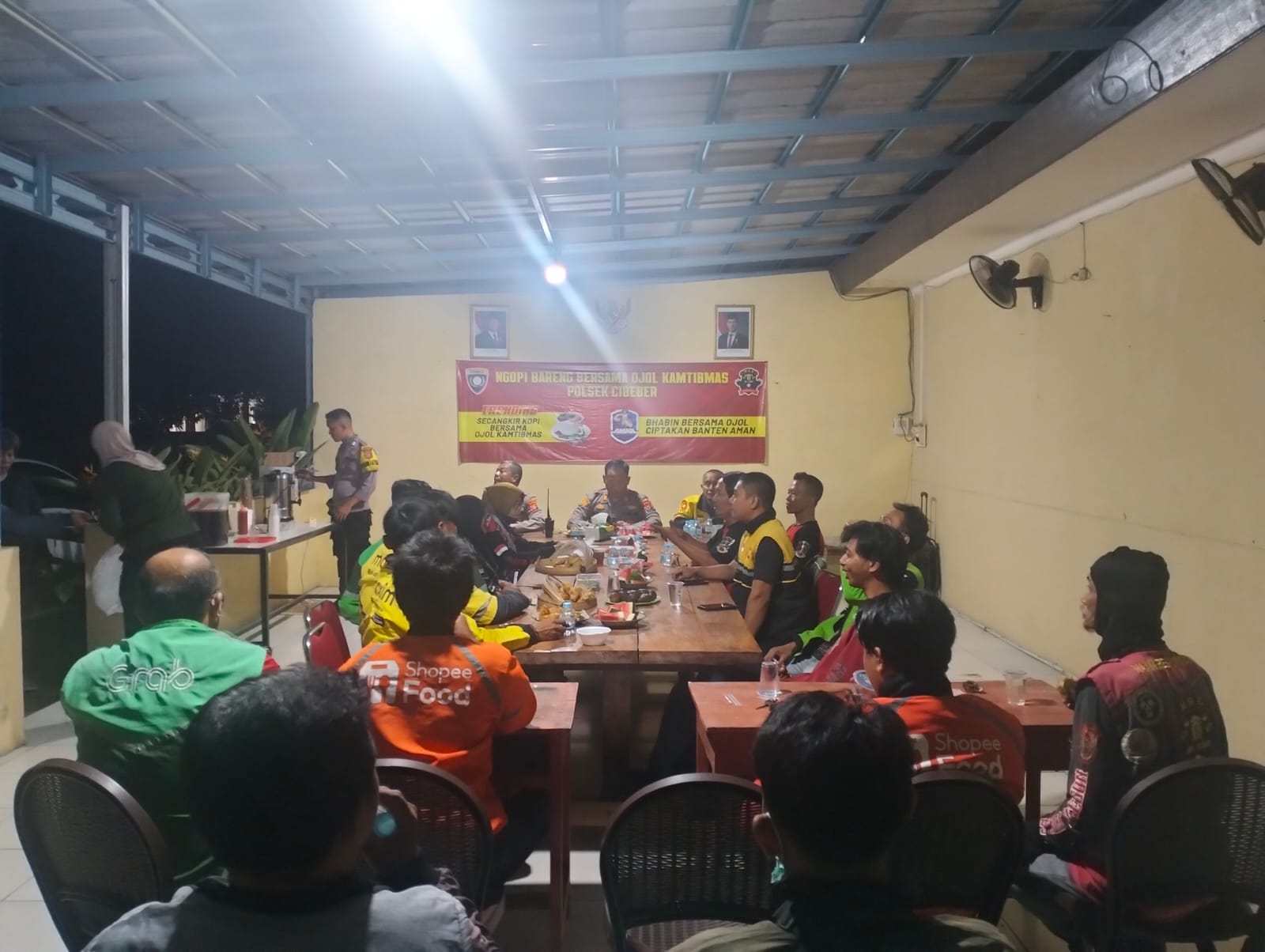 Kapolres Cilegon Polda Banten AKBP Dr. Martua Raja Taripar Laut Silitonga Melalui Kapolsek Cibeber Polres Cilegon Polda Banten AKP Atep Mulyana Mengatakan bahwa Sebagai pengemban fungsi preventif Polri, Ka Polsek Cibener Polres Cilegon Polda Banten menyampaikan pesan-pesan dan himbauan kamtibmas kepada para pengemudi ojek online (Ojol) untuk menjalin tali silahturahmi dan bersama sama perduli dalam menciptakan harkamtibmas yang kondusif.