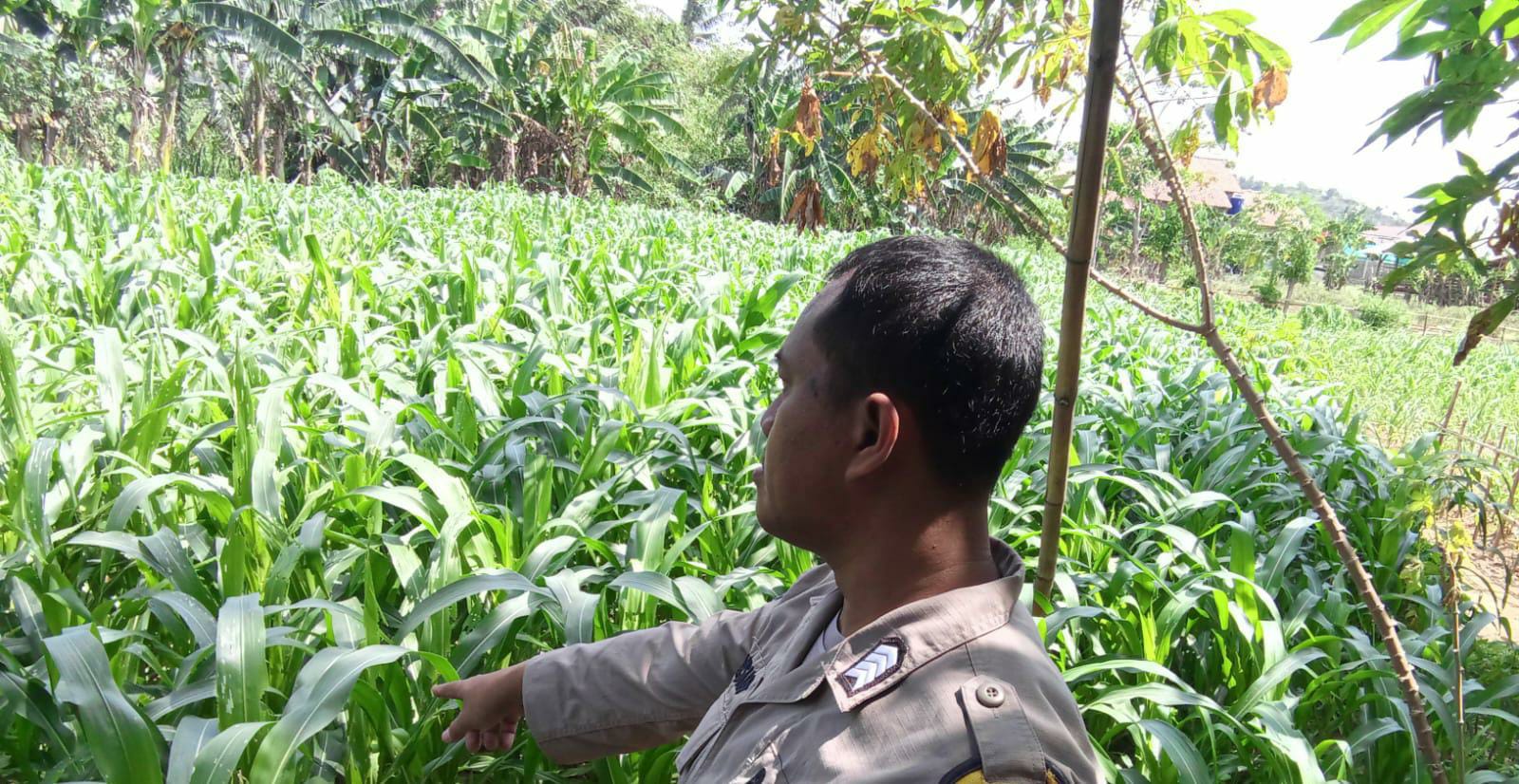 Ipda Yudi Bersama Bripka Susilo Langsung Cek Tanaman Jagung, Sebagai Wujud Dukung Ketahanan Pangan