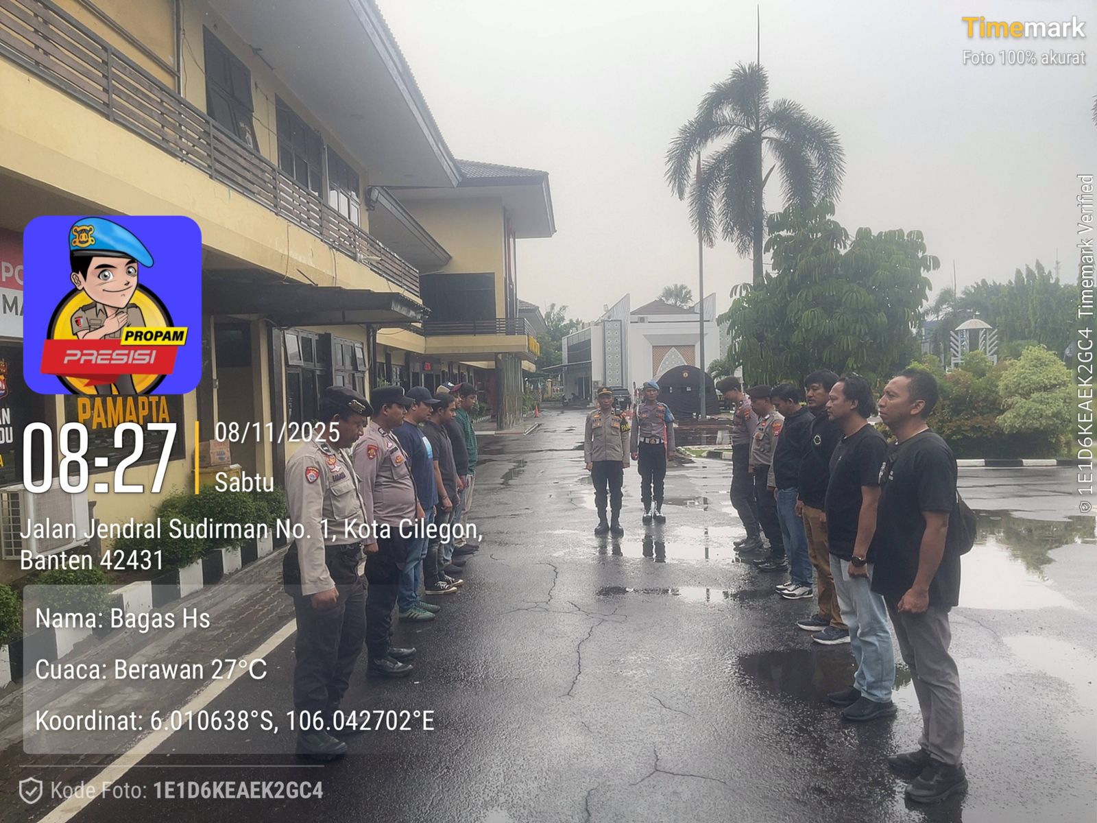 Kapolres Cilegon Polda Banten AKBP  Dr.Martua Raja Taripar Laut Silitonga melalui Kasatreskrim Polres Cilegon AKP Hardi Meidikson Samula mengatakan, “kegiatan personel satreskrim polres cilegon melakukan piket di penjagaan pintu masuk Mako Polres Cilegon mengantisipasi adanya kejahatan yang menggangu kenyamanan dan keamanan mako Polres Cilegon dalam melakukan pelayanan kepada masyarakat kota Cilegon ".