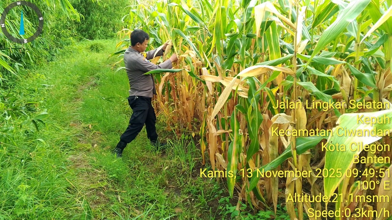 Cilegon - Polsek Ciwandan Polres Cilegon Polda Banten mendukung kegiatan panen jagung Hibrida hasil penanaman Poktan Blumbang Tani di Kelurahan Tegal Ratu, Kecamatan Ciwandan, Kota Cilegon, Kamis (13/11/2025)