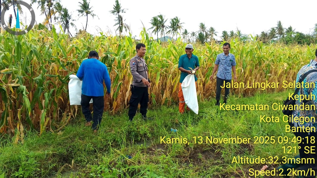 Cilegon - Polsek Ciwandan Polres Cilegon Polda Banten mendukung kegiatan panen jagung Hibrida hasil penanaman Poktan Blumbang Tani di Kelurahan Tegal Ratu, Kecamatan Ciwandan, Kota Cilegon, Kamis (13/11/2025)