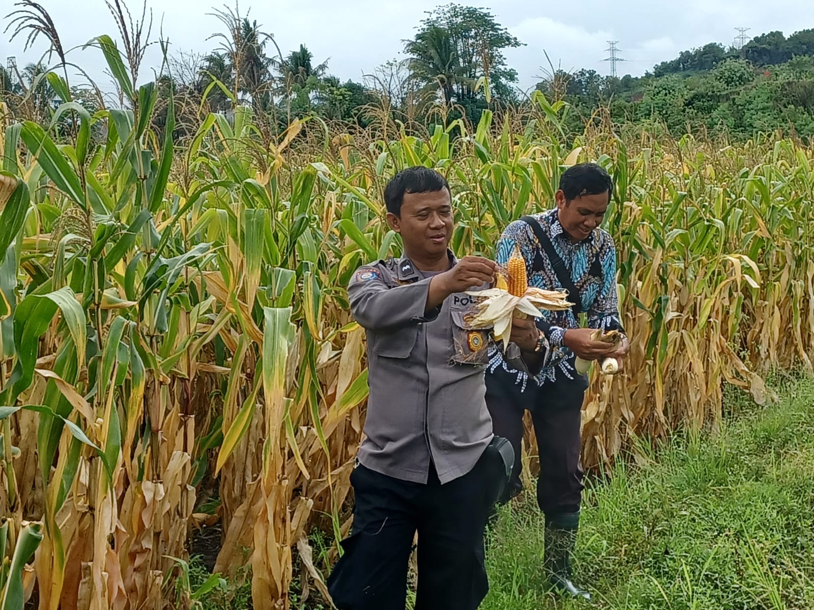 Cilegon - Polsek Ciwandan Polres Cilegon Polda Banten mendukung kegiatan panen jagung Hibrida hasil penanaman Poktan Blumbang Tani di Kelurahan Tegal Ratu, Kecamatan Ciwandan, Kota Cilegon, Kamis (13/11/2025)