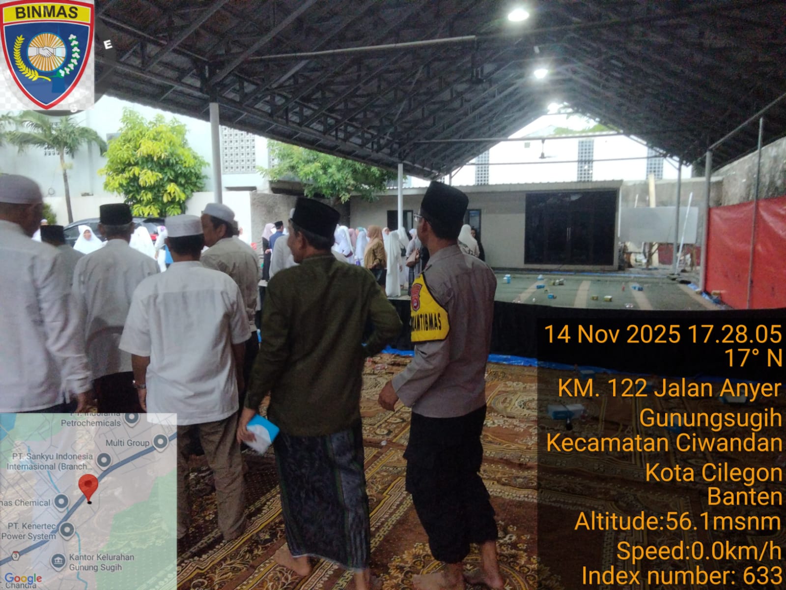 Cilegon - Bhabinkamtibmas Polsek Ciwandan Polres Cilegon Polda Banten menghadiri kegiatan Doa Bersama dan Dilanjutkan Pengajian Rutin dilingkungan Kelurahan Gunung Sugih Kecamatan Ciwandan Kota Cilegon, Jum’at (14/11/2025).