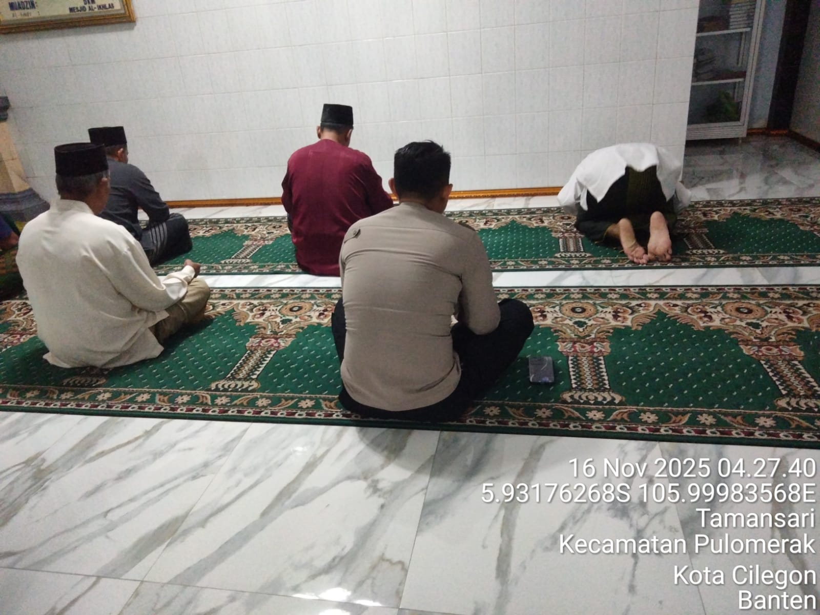 “Dalam kegiatan tersebut, Personil Polsek Kp Polres Cilegon Polda Banten turut berbaur dengan jemaah masjid dalam melaksanakan shalat subuh berjamaah. Setelah itu, dilakukan dialog interaktif antara petugas kepolisian dan masyarakat untuk mendengarkan aspirasi serta memperoleh masukan terkait dengan situasi keamanan dan ketertiban di lingkungan sekitar,” tambah Kapolsek.