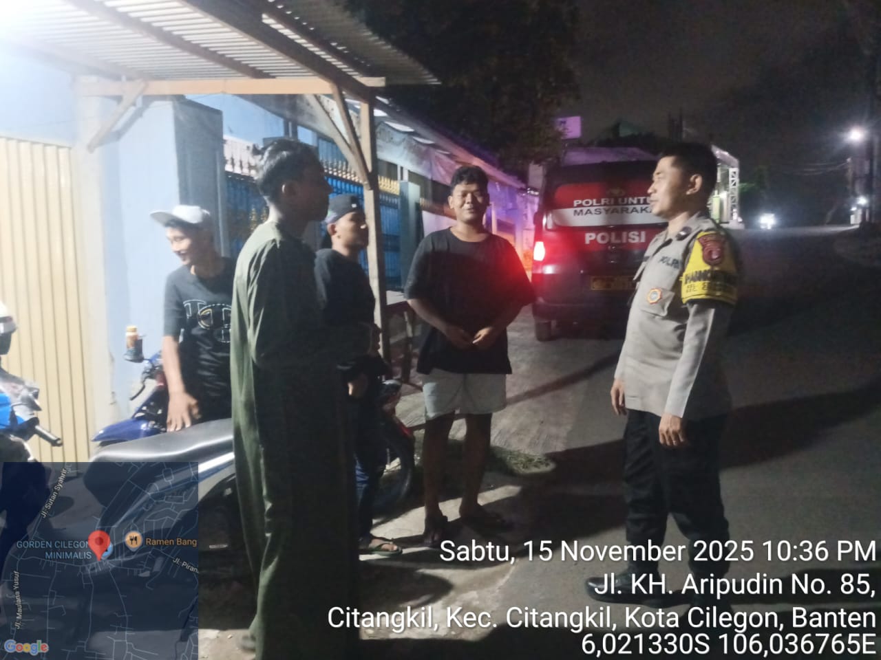 Kapolres Cilegon Polda Banten AKBP Dr. Martua Raja Taripar Laut Silitonga Melalui Kapolsek Ciwandan Polres Cilegon Polda Banten KOMPOL Andi Suherman Mengatakan bahwa setiap malam Personil Polsek Ciwandan Polres Cilegon Polda Banten menggelar patroli dengan menyasar daerah rawan dan Pada Jam Yang Dianggap Rawan, Hal tersebut dilakukan untuk mencegah terjadinya gangguan kamtibmas seperti kejahatan jalanan jambret ataupun curanmor.