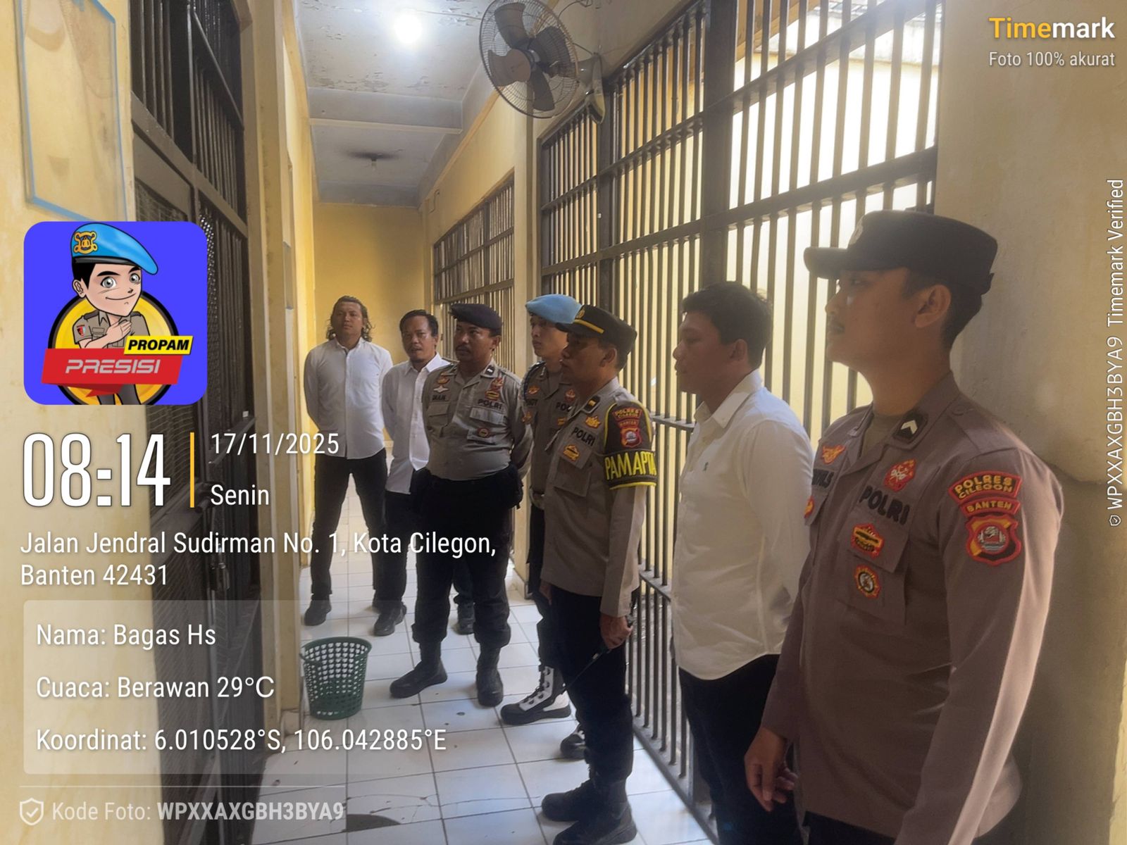 Cilegon,Personel piket Satreskrim Polres Cilegon Polda Banten beserta piket fungsi lainya melakukan pengecekan jumlah perbaikan dan ruang di setiap kamar rutan di polres cilegon. Kegiatan ini bertujuan agar terus memonitor keadaan para keadilan di rutan polres cilegon dan menghindari hal-hal yang tidak diinginkan serta memeriksa kekuatan setiap ruangan. Senin (17/11/2025).