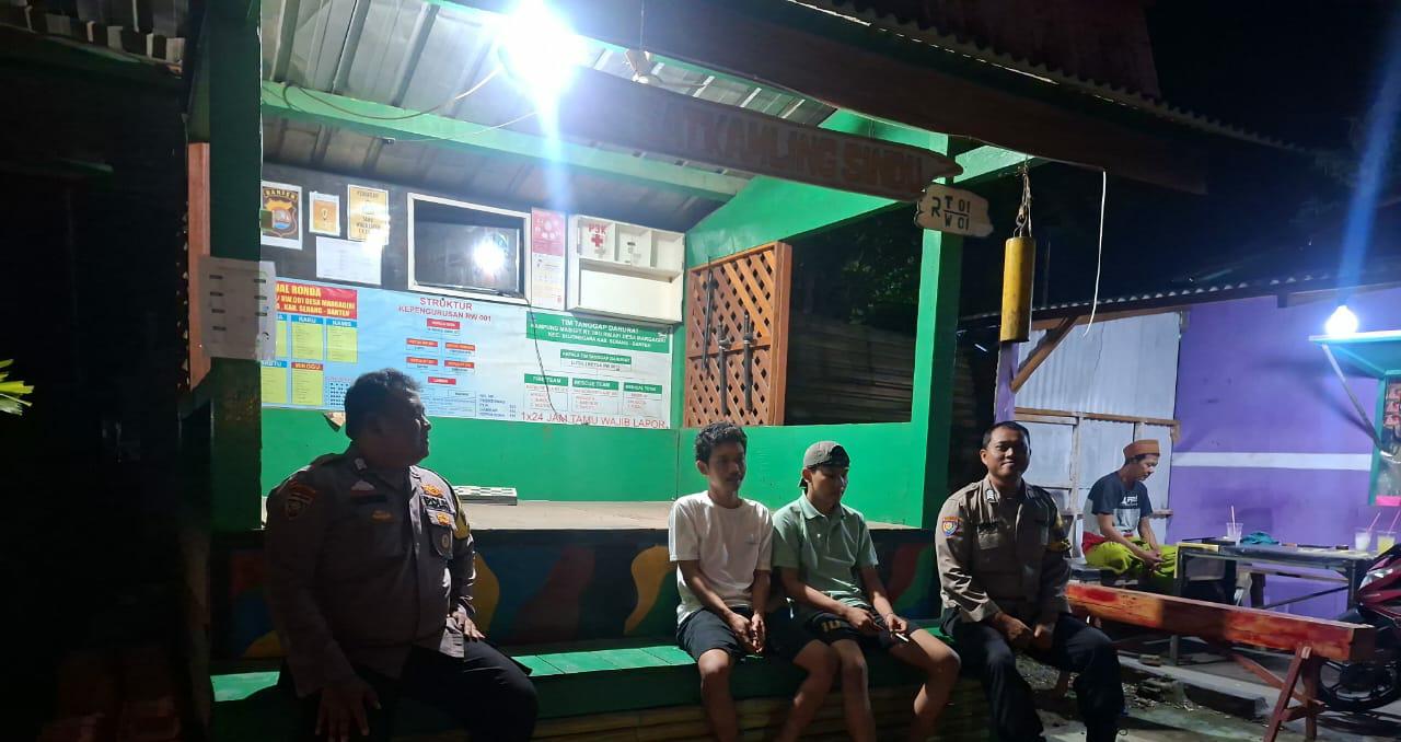 Cilegon ~ Dalam upaya menjaga situasi kamtibmas tetap kondusif,Bhabinkamtibmas Polsek Bojonegara Polres Cilegon Polda Banten, Bhabinkamtibmas Desa Margagiri melaksanakan kegiatan kontrol dan pemantauan ronda malam,di sejumlah pos ronda warga yang berada di wilayah binaannya, Selasa (18/11/2025).
