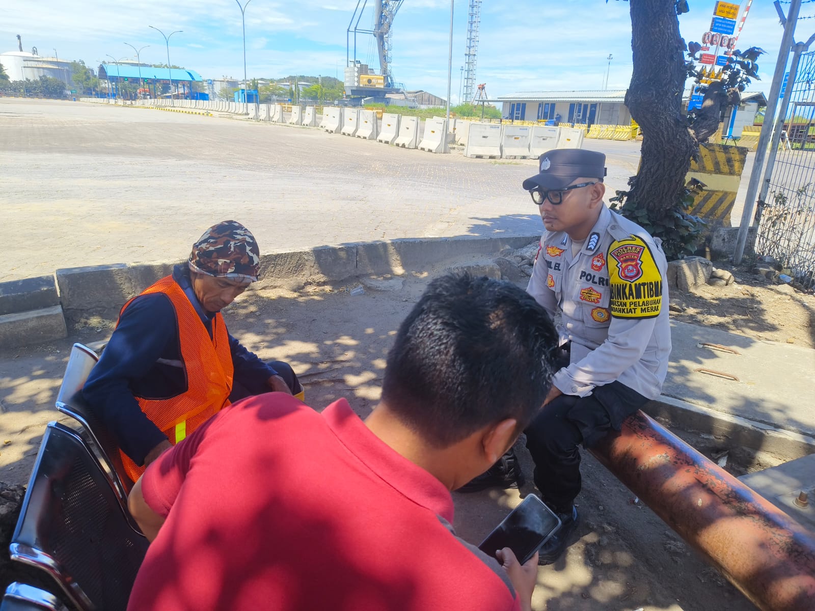 Jalin Silaturahmi, Bhabinkamtibmas Pelabuhan Polsek Kawasan Pelabuhan Banten berbincang ke Buruh Pelabuhan