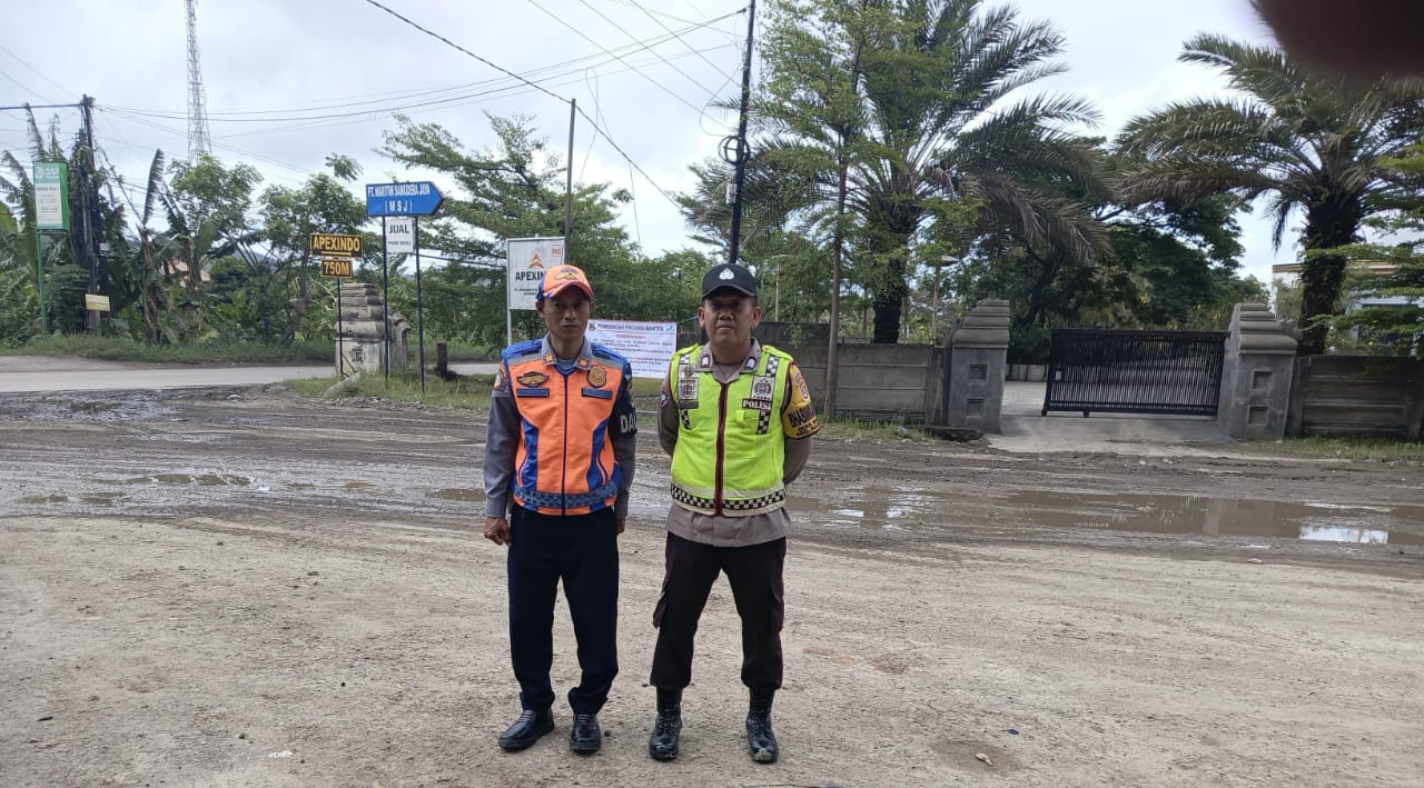 Bhabinkamtibmas dan Dishub Laksanakan Gatur Lalin Di Jalan Raya PT MSJ Bojonegara