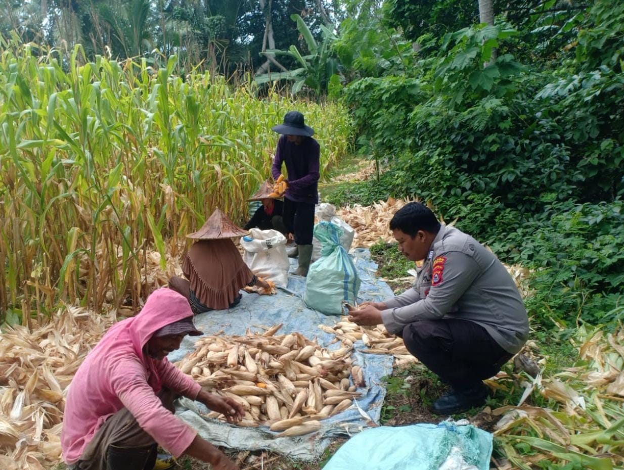 Personel Polsek Anyar Lakukan Pendampingan Panen Jagung Kelompok Tani Wilayah