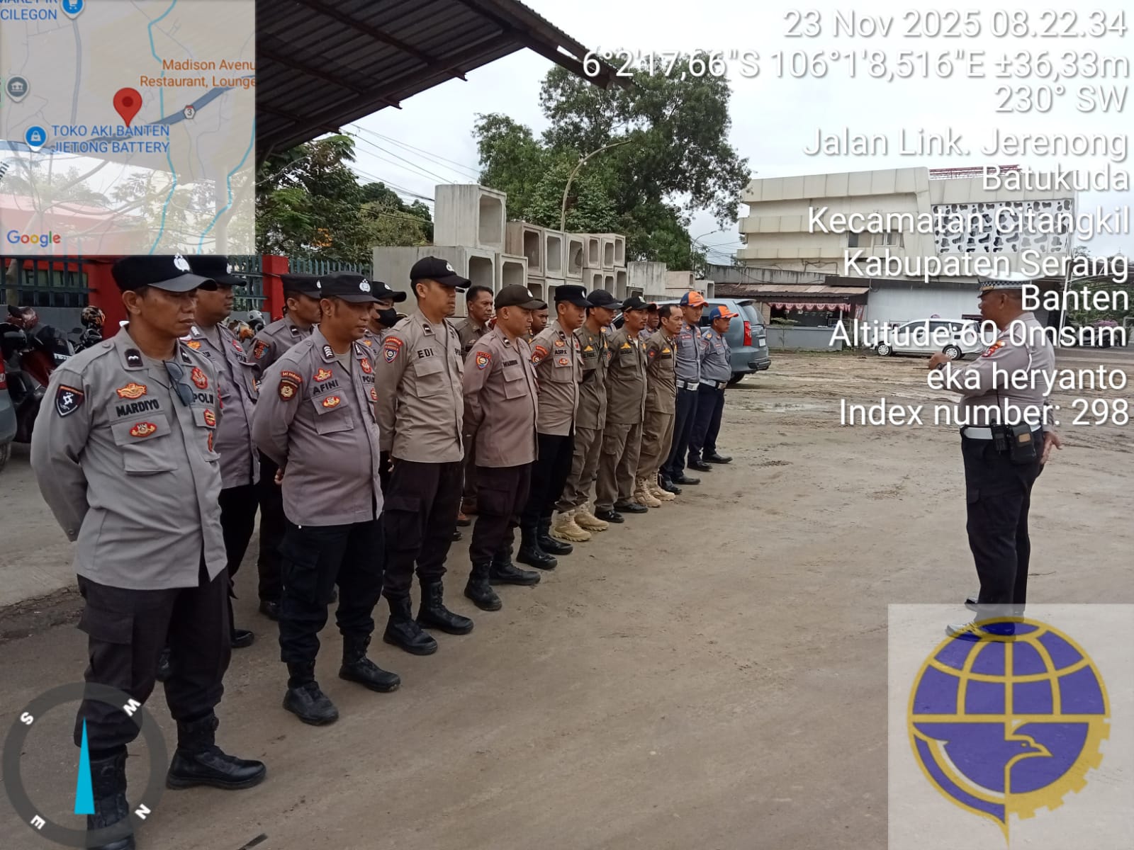 Cilegon - Apel Pagi Kegiatan Rutin yang Ditingkatkan (KRYD) dalam rangka pengaturan arus lalu lintas di Jalur Lingkar Selatan, Minggu (23/11/2025).