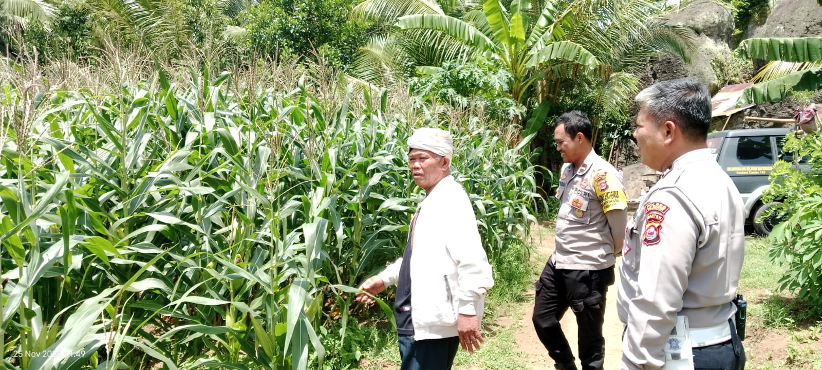 Monitoring ini dilakukan terhadap tanaman jagung yang telah memasuki usia tanam 75 hari. Selain melihat perkembangan tanaman, Bhabinkamtibmas juga melakukan dialog dengan petani untuk mengetahui kendala yang dihadapi serta memberikan motivasi dalam meningkatkan hasil pertanian.