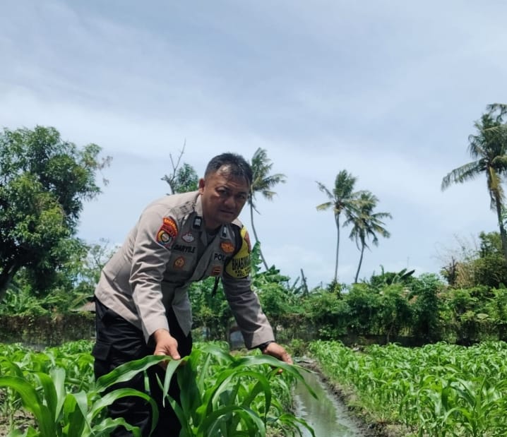 -POLRES CILEGON–Polda Banten. Bhayangkara Pembina Keamanan dan Ketertiban Masyarakat (Babinkamtibmas) Aiptu Daryo.E aktif mendampingi petani jagung di lingkungan Daliran, Kelurahan Kebondalem, Kecamatan Purwakarta, Kota Cilegon. Kegiatan ini meliputi monitoring pertumbuhan tanaman jagung serta pengecekan kondisi lingkungan sekitar.Selasa.(25-11-2025).