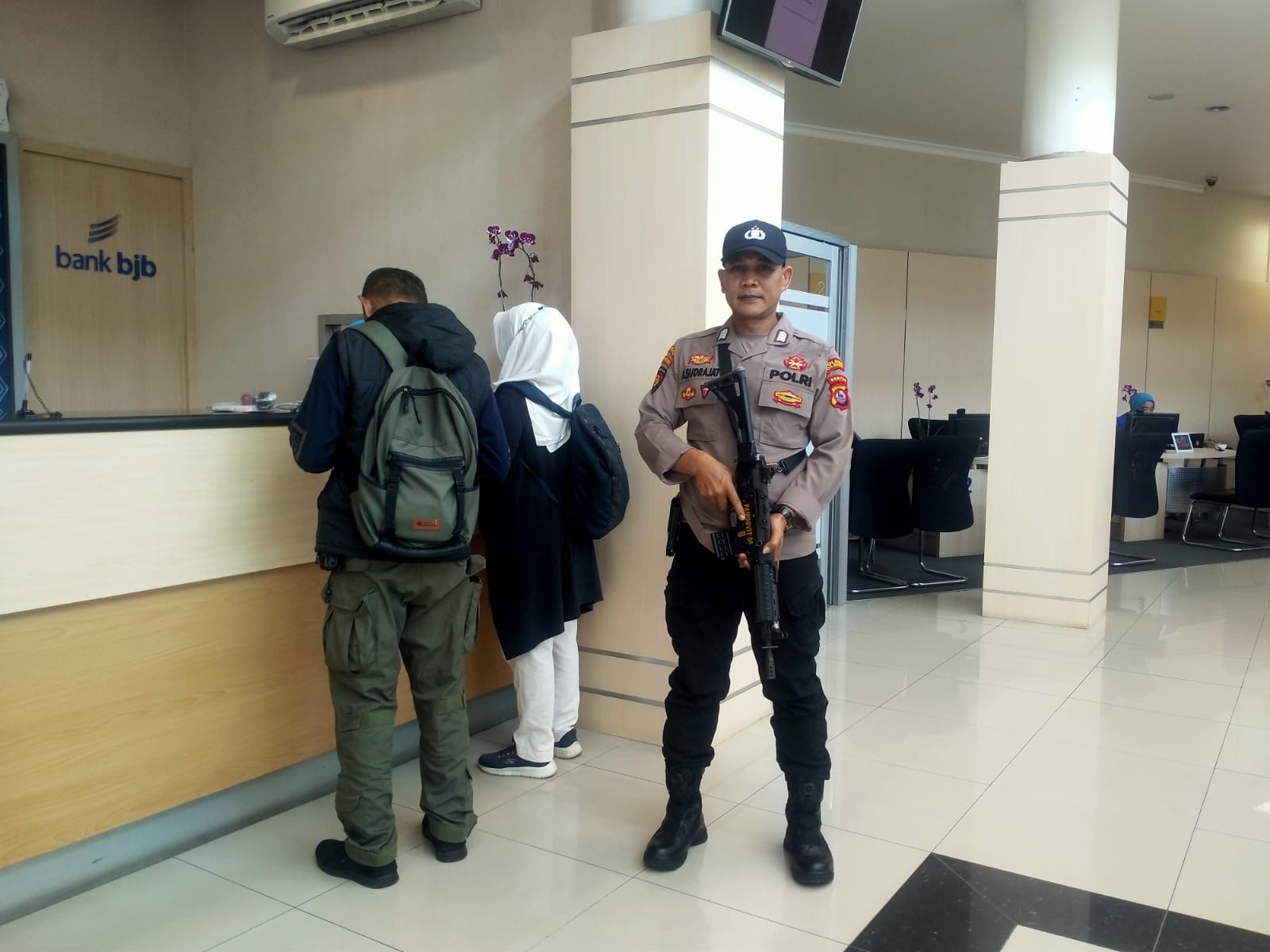 Bripka ajat cek situasi sekitar bank
