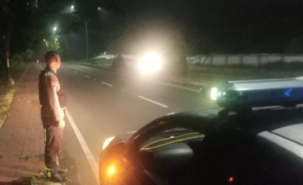 Personil Polsek Purwakarta melaksanakan patroli Blue Light di jalur-jalur rawan kemacetan sebagai upaya antisipasi gangguan kamtibmas dan balap liar.