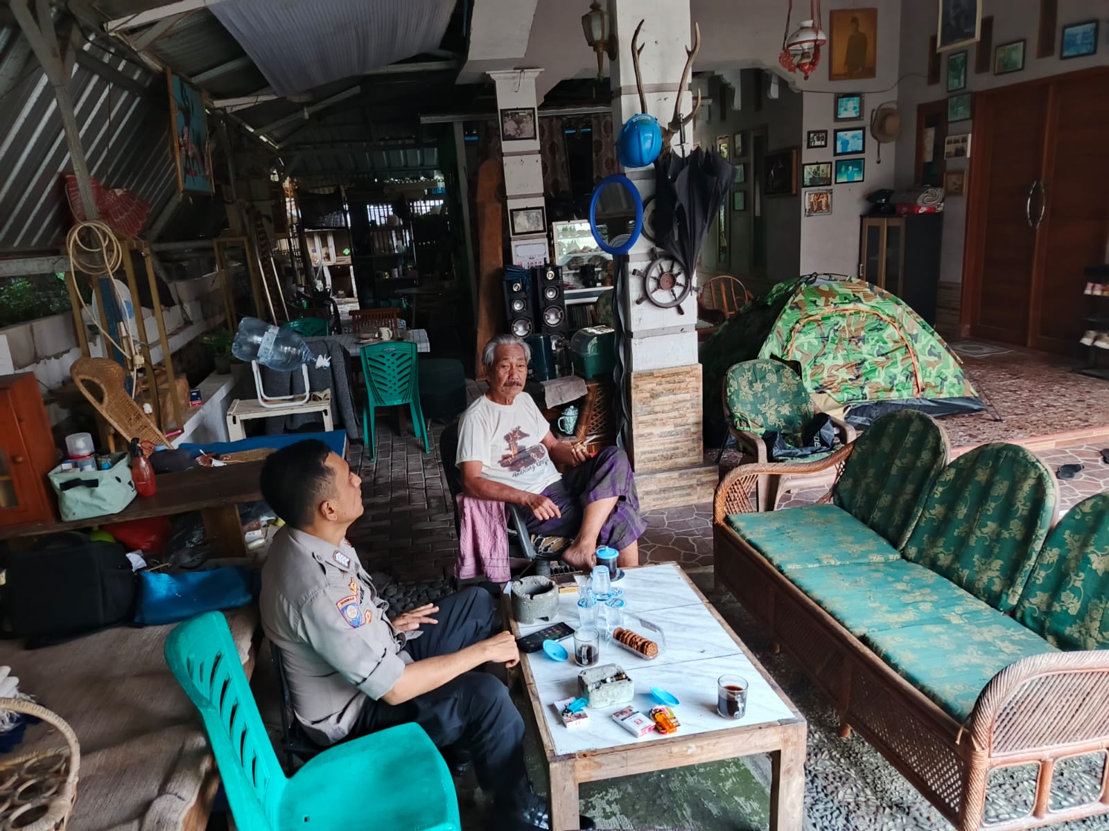 Anggota unit patroli samapta Polsek Cilegon sambang kepada warga jalin keakraban menjaga keamanan di lingkungan wilayah hukum