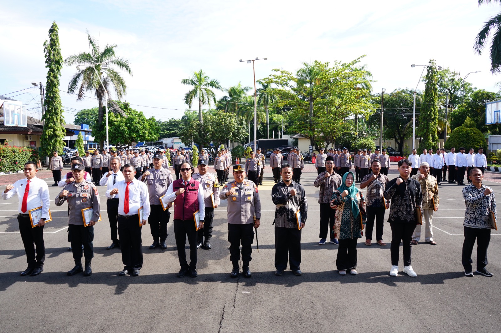 Cilegon – Polres Cilegon Polda Banten menggelar apel pemberian penghargaan kepada personel dan warga masyarakat yang berprestasi dalam membantu proses pencarian orang hilang secara cepat dan efektif. Kegiatan berlangsung di Lapangan Apel Satya Haprabu Polres Cilegon, dipimpin langsung oleh Kapolres Cilegon AKBP Dr. Martua Raja Taripar Laut Silitonga, S.H., S.I.K., M.Si. Jumat pagi (5/12/2025)