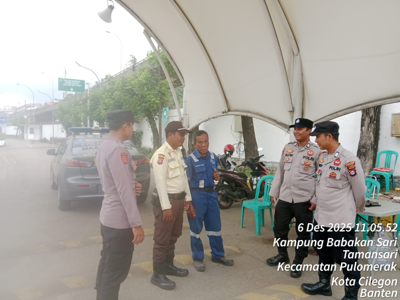 Cilegon - Personel Polsek Kskp Merak Polres Cilegon Polda Banten melaksanakan sambang dan patroli kawasan pelabuhan merak dalam rangka menjaga Harkamtibmas di Kawasan Pelabuhan Merak, Sabtu (06/12/2025).