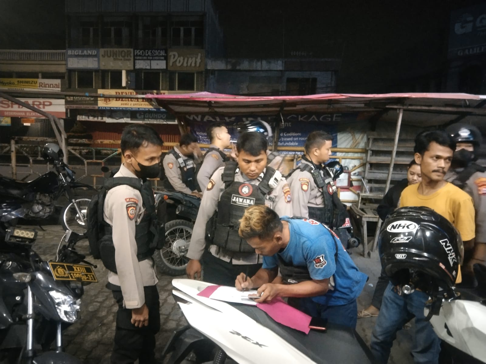 Kanit Turjawali Satsamapta Ipda Ferri dan Anggota Patroli Maung Presisi Sat Samapta Polres Cilegon menghimbau kepada masyarakat kota Cilegon untuk selalu waspada dan meningkatkan keamanan di lingkungan sekitarnya guna mengantisipasi kejadian tindak pidana khususnya 3C agar terciptanya situasi yang aman dan kondusif. (Satsamapta)