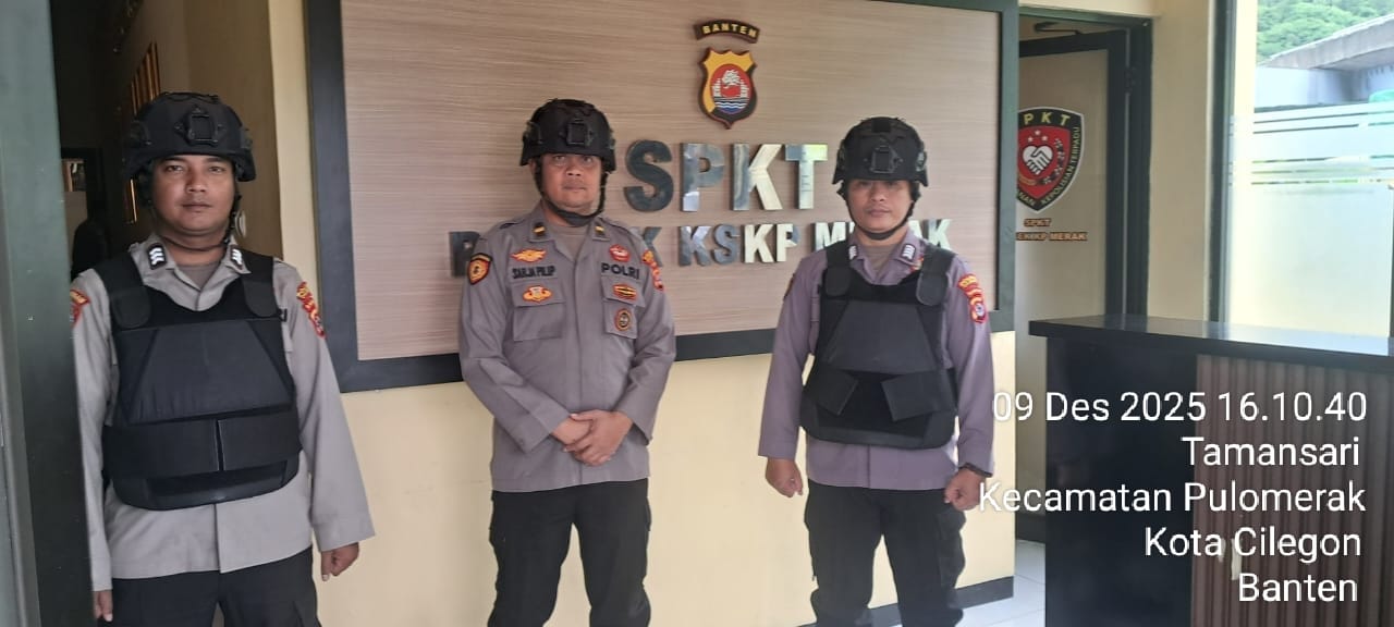 Cilegon - Personel piket jaga Polsek Kskp Merak Polres Cilgon Polda Banten melaksanakan siaga 1 Polsek pelaksanaan Sispam Mako oleh piket siaga dipimpin oleh Kspk Polsek Kskpy Merak Polres Cilegon Polda Banten, Selasa (09/12/2025).