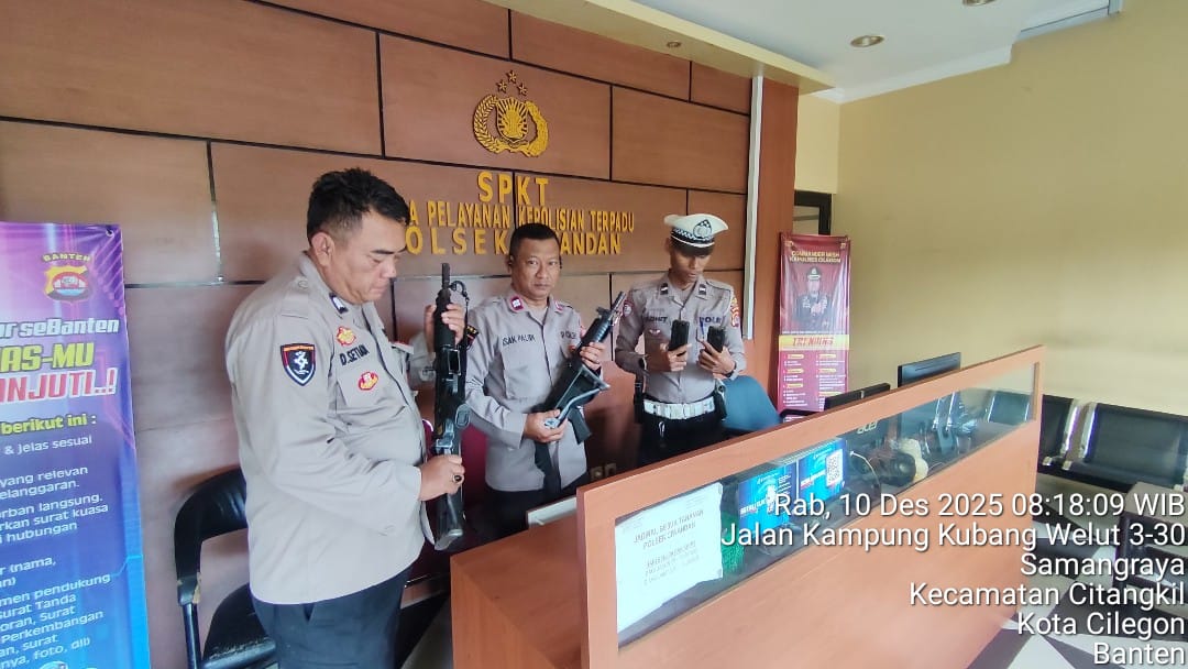 Cilegon - Ka SPKT Polsek Ciwandan Polres Cilegon Polda Banten Pimpin langsung pengecekan kendaraan Dinas Dan Inventaris Polsek Ciwandan Saat Serah terima Tugas Penjagaan, khususnya mobil patroli, Selasa (09/12/2025).