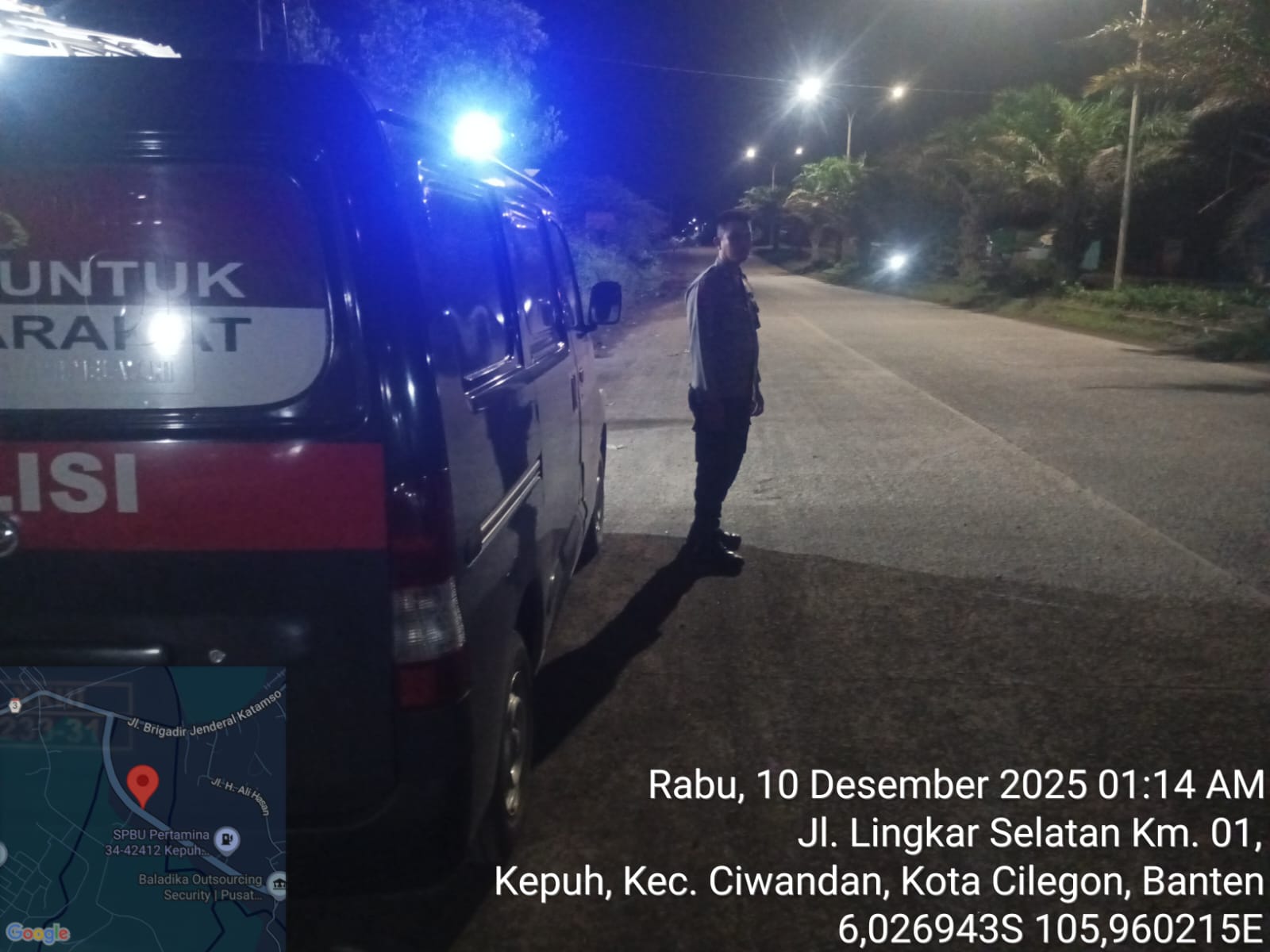 Cilegon - Personil Polsek Ciwandan Ciptakan situasi keamanan dan ketertiban di masyarakat (Kamtibmas) yang aman kondusif Dengan Melaksanakan kegiatan patroli malam guna mencegah gangguan kamtibmas dan kejahatan jalanan, Rabu (10/12/2025).