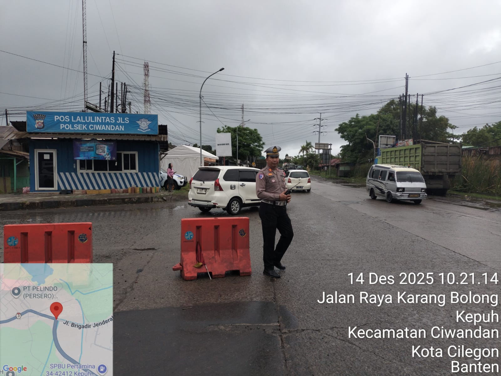 Personil Polsek Ciwandan melakukan pengaturan lalu lintas di depan Pos Lantas JLS Ciwandan dan peneguran terhadap pelanggaran kasat mata. Kegiatan ini dilaksanakan untuk memastikan keamanan dan kelancaran arus lalu lintas di wilayah hukum Polsek Ciwandan.