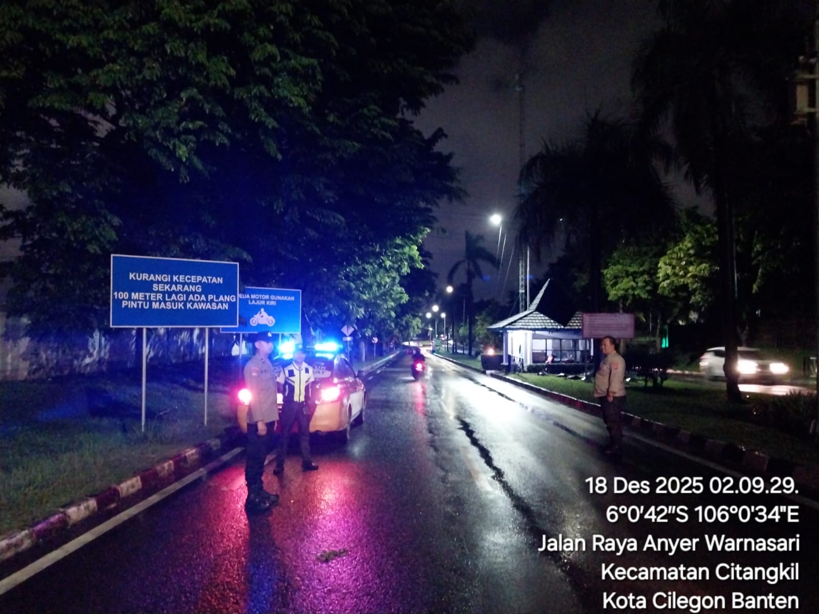 Cilegon - Demi Menjaga keamanan Daerah Hukum Polsek Ciwandan agar tetap kondusif, Personil Polsek Ciwandan Polres Cilegon Polda Banten Melakukan kegiatan sambang kamtibmas Dan Patroli Bersama Security, Kamis (18/12/2025).