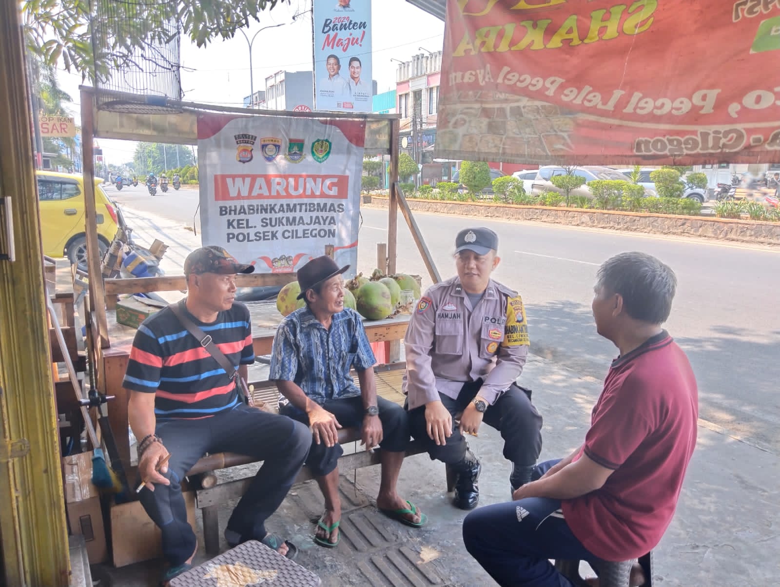 Anggota unit patroli samapta Polsek Cilegon sambang kepada warga jalin keakraban menjaga kondusifitas di lingkungan
