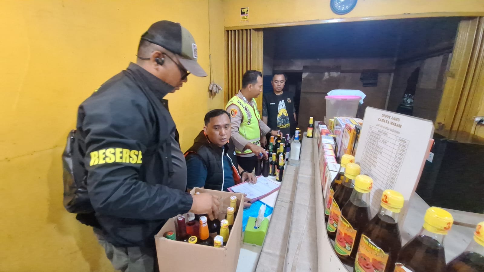 Hasilnya, diamankan berbagai jenis minuman beralkohol: